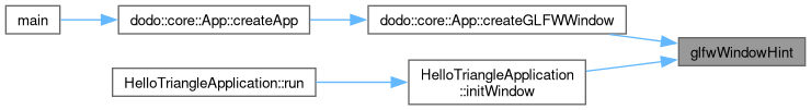 glfwOpenWindowHint. Referenced by dodo::core::App::createGLFWWindow(), and HelloTriangleApplication::initWindow().